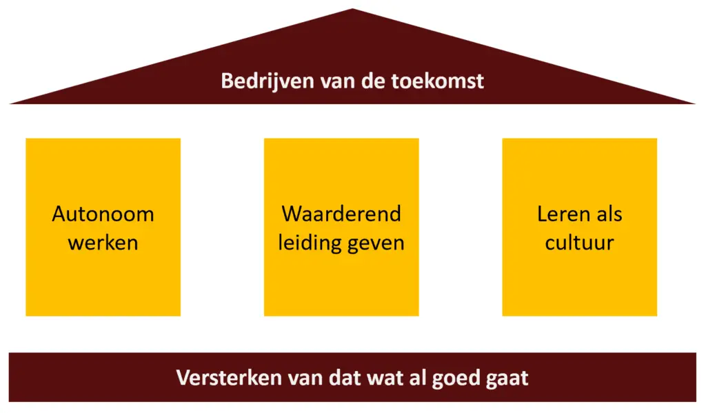 Wij helpen bedrijven om hun toekomst waar te maken en verandering aan te kunnen, door teams en werknemers de ruimte te geven om meer zelf te beslissen en hun ontwikkeling hierin op een positieve manier te stimuleren.